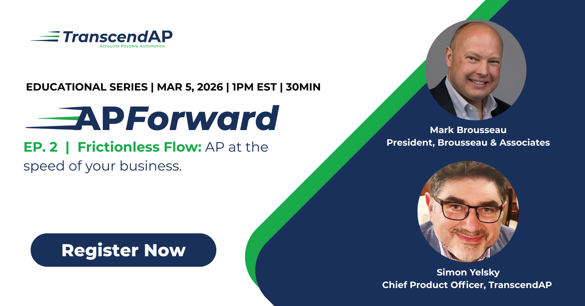 APForward is a monthly 30-minute webinar series exploring current issues for accounts payable and finance teams. It brings together industry experts and topics that inform and challenge standards. Led by AP automation consultant Mark Brousseau, each session delivers practical insights, peer perspectives, and real-world strategies to help finance teams move AP forward. The series offers forward-thinking insights for a traditional industry and a safe space for leaders to ask questions, while learning to leverage existing and emerging technologies and to deliver lasting tactical and strategic impact for their organization.